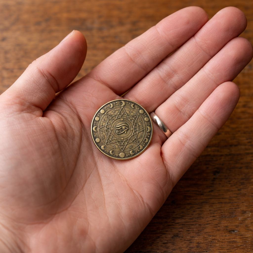 Discover a tactile connection to the cosmos with the ALIGNRA™ Eternal Metal Medallion. Cast in high-grade, antique-finished metal, this coin possesses a substantial weight and a warm, sun-kissed patina that feels timeless in the palm of your hand.